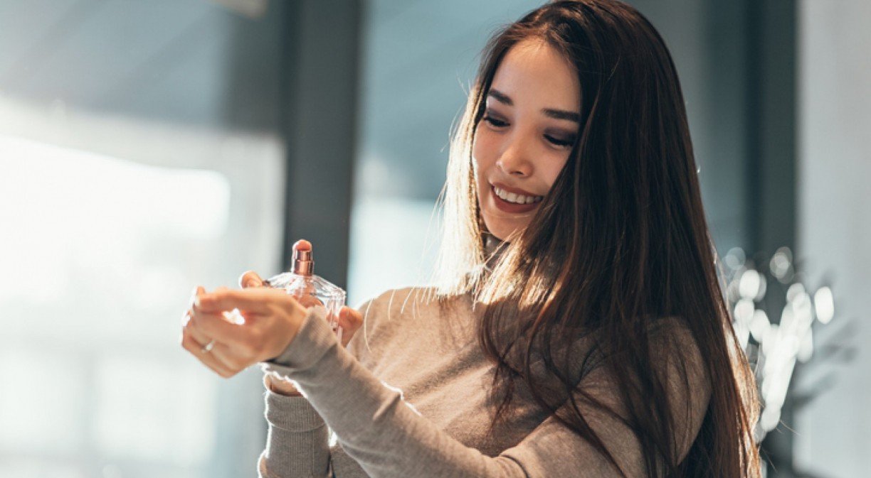 Imagem ilustrativa de uma mulher passando perfume. – Foto: iStock