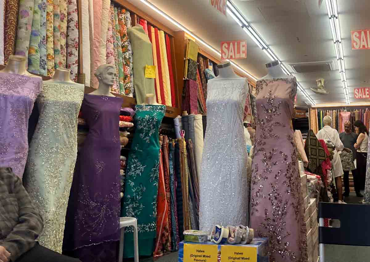 Esta rua é realmente o paraíso da costureira. Algumas lojas têxteis que você pode considerar visitar incluem Tecidos Reais (Rua Árabe 84)que vende rendas e tecidos reais de alta qualidade de todo o mundo, e Mahaco Impex (Rua Árabe 107)que irá mimá-lo com sua variedade de designs estampados.